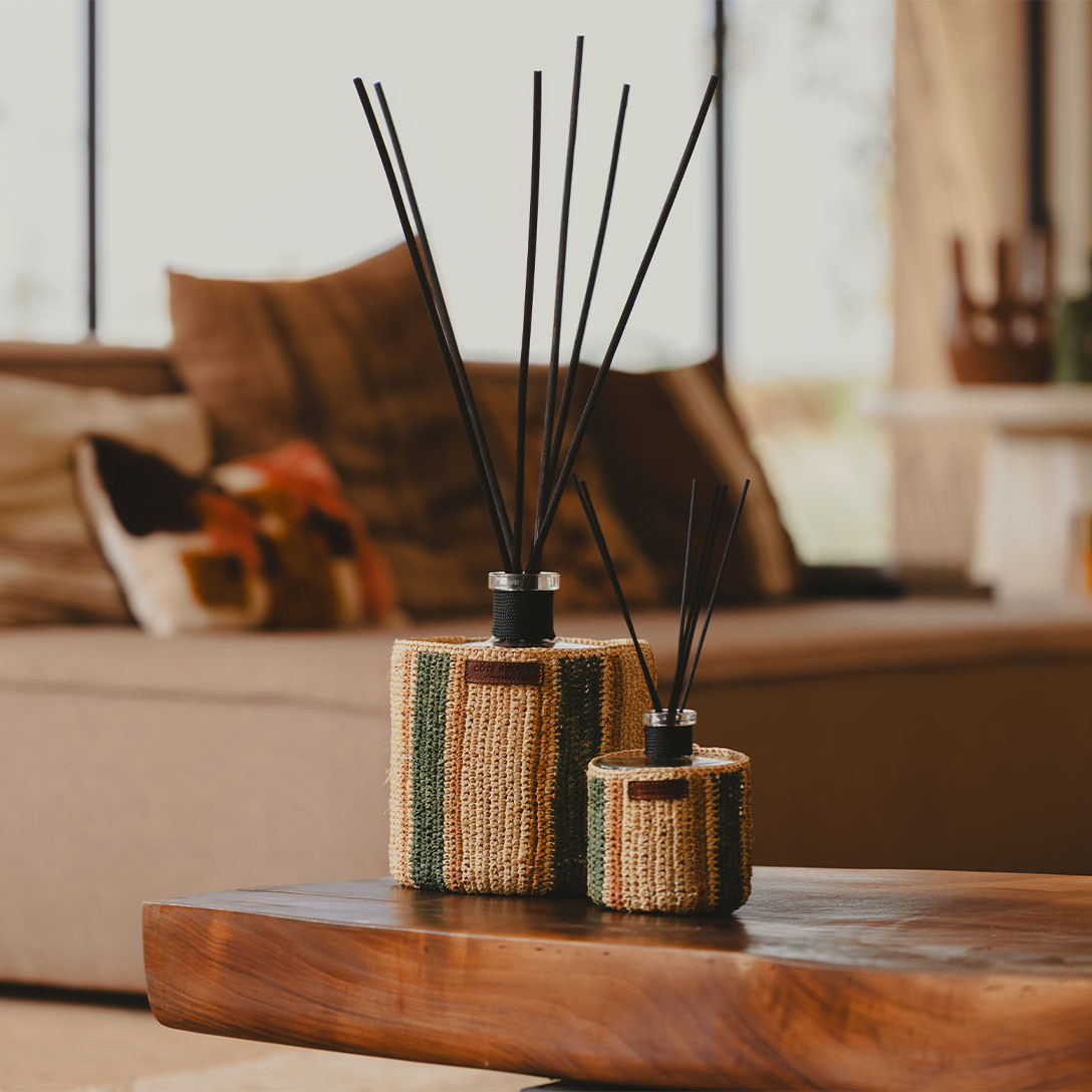 Tyčinkové difuzéry Côté Bougie jsou jedinečné designové produkty, které zahalí váš interiér do vůní inspirovaných Marokem. Každý kus ručně vyrábějí marocké ženy, tradiční postupy zachovávají autenticitu výrobku a zároveň podporují jejich zaměstnanost a nezávislost. Difuzér tak přináší do vašeho domova nejen vůni, ale i stylový dekorativní prvek s příběhem.