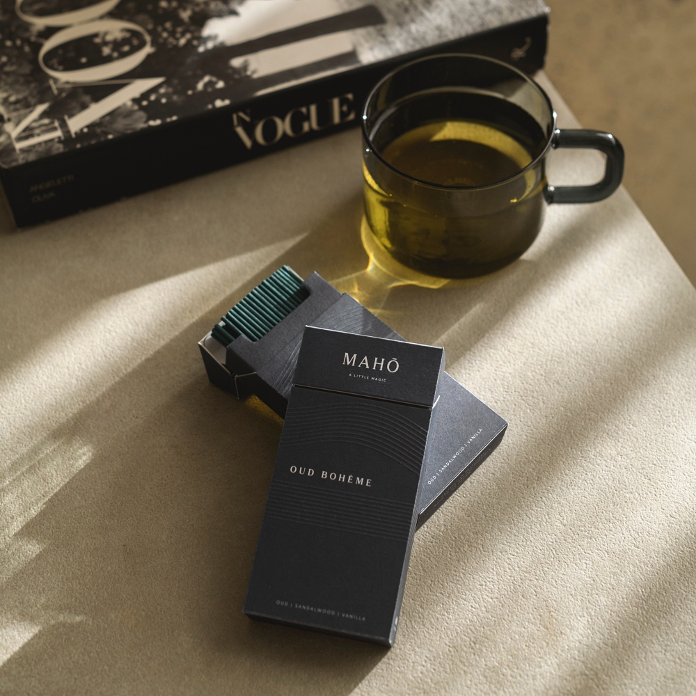 Vonné tyčinky MAHŌ si zamilují i ti, kteří je běžně nevyhledávají. Jsou totiž tvořeny výhradně z aromatické směsi přírodních pryskyřic a prémiového parfému – bez jakéhokoli dřevěného jádra. Každá tyčinka je kompaktní a samonosná, takže při hoření neuvolňuje kouř z dřívka, ale pouze čistou vůni samotné aromatické směsi.